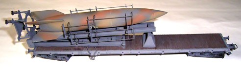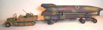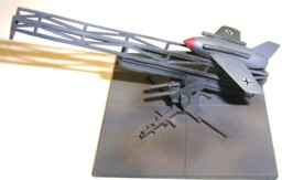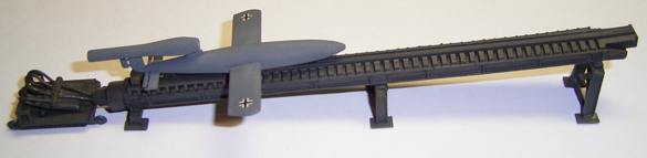 Fertigmodell einer Abschußrampe für V1 mit Rakete.
