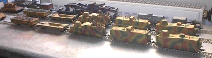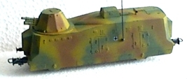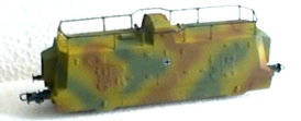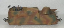 Fertigmdoell aus Resin, 2. Wagen von links zum Panzerzug BP 42.
