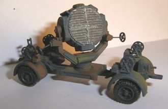 Halbkettenfahrzeug mit 2cm Flak und Transportanhänger mit Flakscheinwerfer.